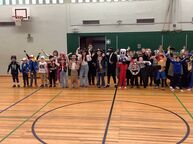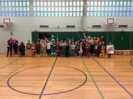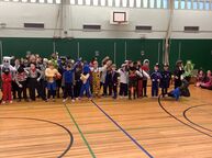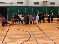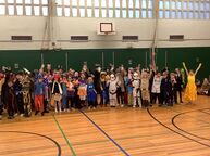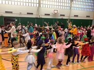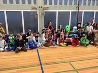 Viele bunte, fantasievoll, liebevoll verkleidete Kinder und Erwachsene trafen sich zum gemeinsamen Feiern in der Turnhalle. Kostüme wurden vorgestellt und beklatscht und natürlich wurde auch ausgelassen getanzt. In diesem Jahr gab es sogar zwei Höhepunkte: